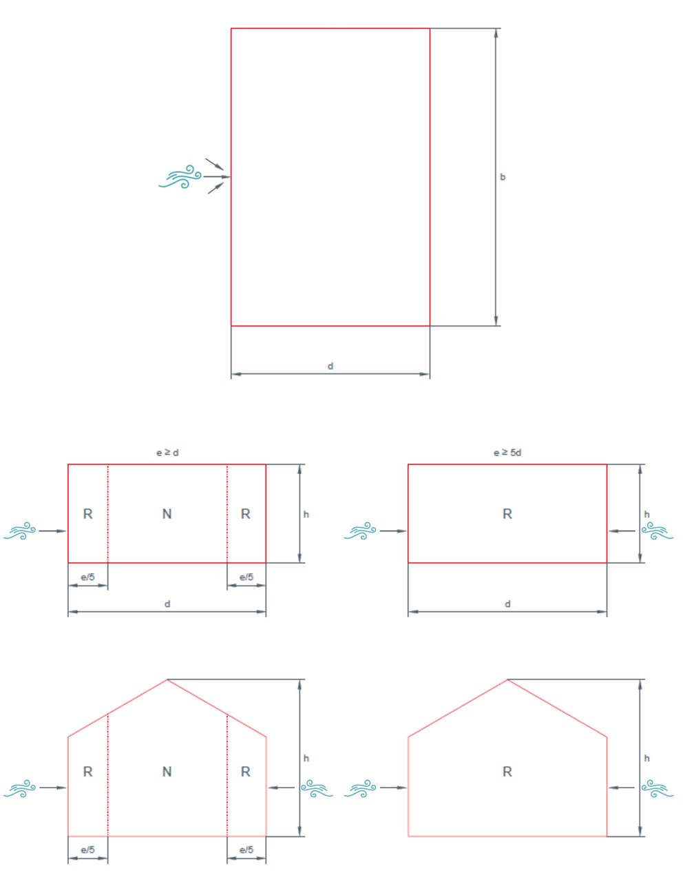 Pri pokládke krytín na stojatú drážku treba šírky krytinových pásov a rozostupy príponiek prispôsobiť zaťaženiu vetrom špecifickému pre danú lokalitu a objekt. Spoločnosť PREFA zostavila a usporiadala do tabuliek pre pokrývačov zjednodušený návrh dimenzovania. Zjednodušené návrhy dimenzovania platia výlučne pre uzatvorené stavebné objekty a len pre strešný systém PREFALZ alebo FALZONAL® v kombinácii s pevnými a posuvnými príponkami PREFA a príslušným upevňovacím materiálom (klince/skrutky) od spoločnosti PREFA, ako aj pri montáži na celoplošné debnenie. Tabuľky sú zostavené v súlade s normou EN 1991-1-4. Kategóriu územia možno nájsť v norme EN 1991-1-4 a základnú rýchlosť vetra v národných dodatkoch k norme EN 1991-1-4. Časti fasády boli optimalizované na dve časti a premenované (R = okrajová časť, N = normálna časť). V okrajovej časti budov je zaťaženie vetrom najväčšie a treba jej venovať osobitnú pozornosť.