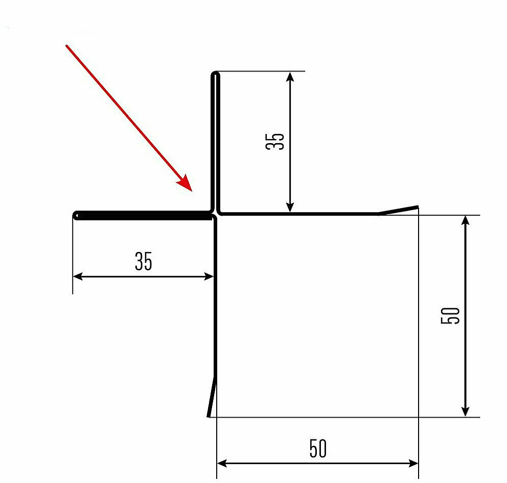 Červená šípka označuje farebnú stranu príslušenstva profilov.