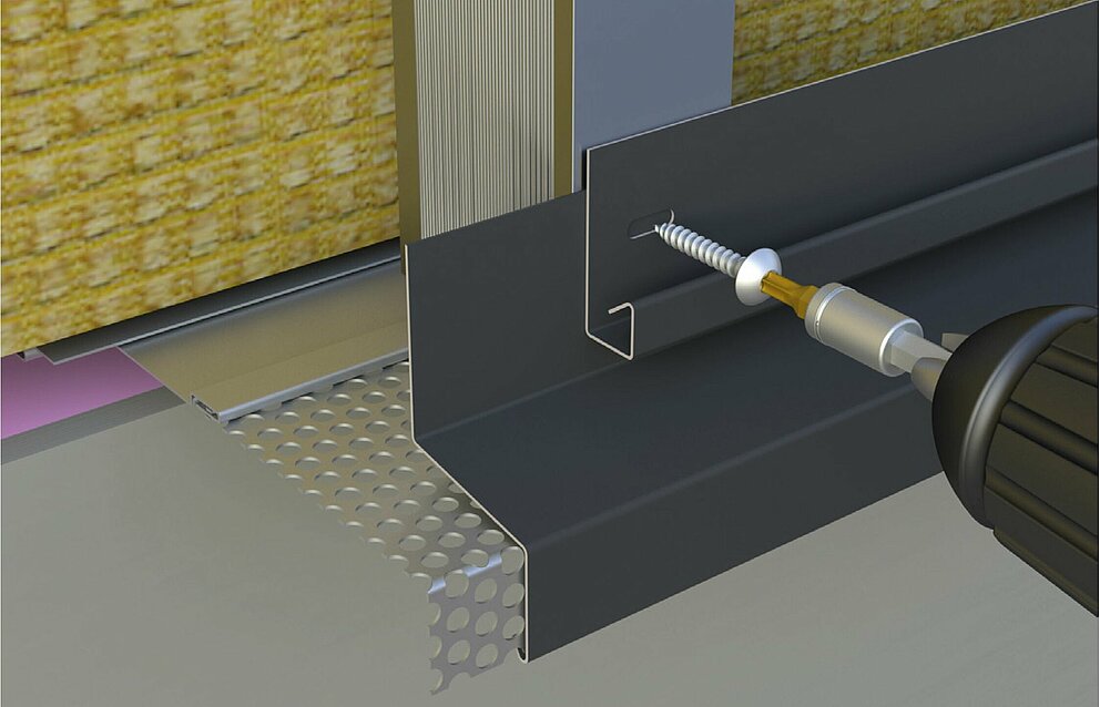 Ak sú v oblasti sokla urobené všetky prípravy na napojenie, môže sa v závislosti od smeru montáže lamiel Siding začať s montážou štartovacieho profilu alebo perforovanej krycej lišty.