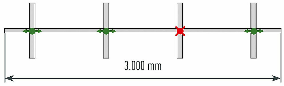 Pri pevnom bode sa závrtná skrutka skrutkuje priamo cez štartovací profil príp. perforovanú kryciu lištu. Aby sa zachoval posuvný bod, vyrazte požadovaný otvor pomocou klieští na vysekávanie pozdĺžnych otvorov.