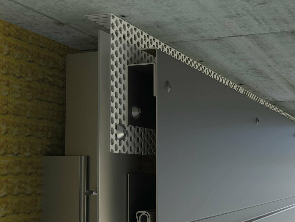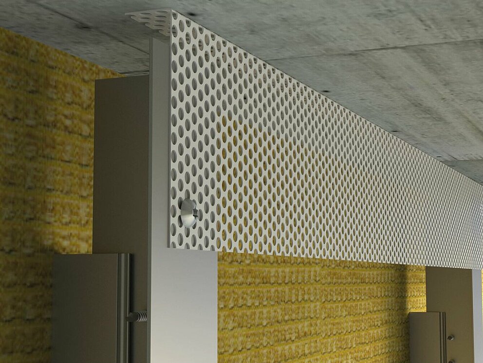 Aby bola fasáda riadne prevetrávaná, musí sa na hornom ukončení naplánovať otvor na odvádzanie vzduchu. Na odvetrávací otvor (napr. strešný podhľad) namontujte perforovaný plech s 90° ohybom, aby sa docielila vyššia pevnosť.