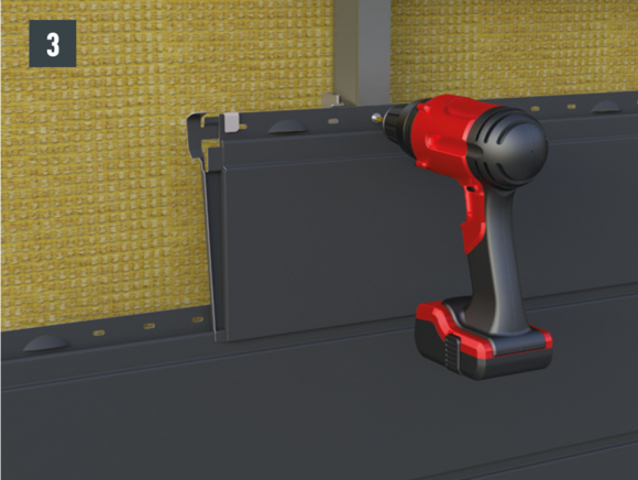 • Namontujte Siding s predmontovanou škárou podľa montážnej príručky pre lamely Siding a upevnite ho na podkonštrukciu (obrázok 3).