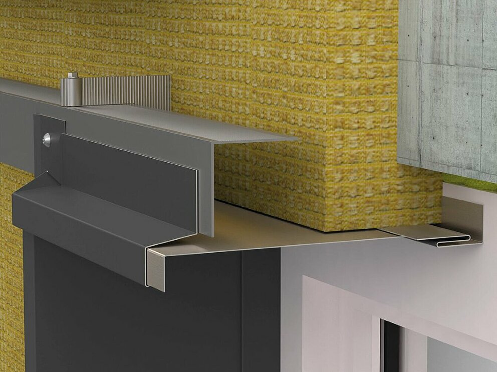 Potom sa vľavo a vpravo od okna na podkonštrukciu naskrutkujú pridržiavacie uholníky pre plech ostenia. Súčasne sa na okenný rám alebo múr pripevnia aj násuvné lišty pre plech ostenia a násuvná lišta pre okenný preklad.