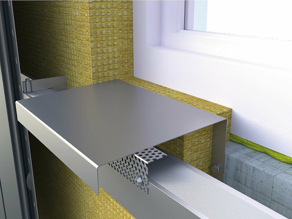 V prvom kroku obloženia okna sa montuje perforovaný plech a pridržiavací pás. Skontrolujte, či nič neprekáža otvoru na odvod vzduchu z prevetrávanej vrstvy.