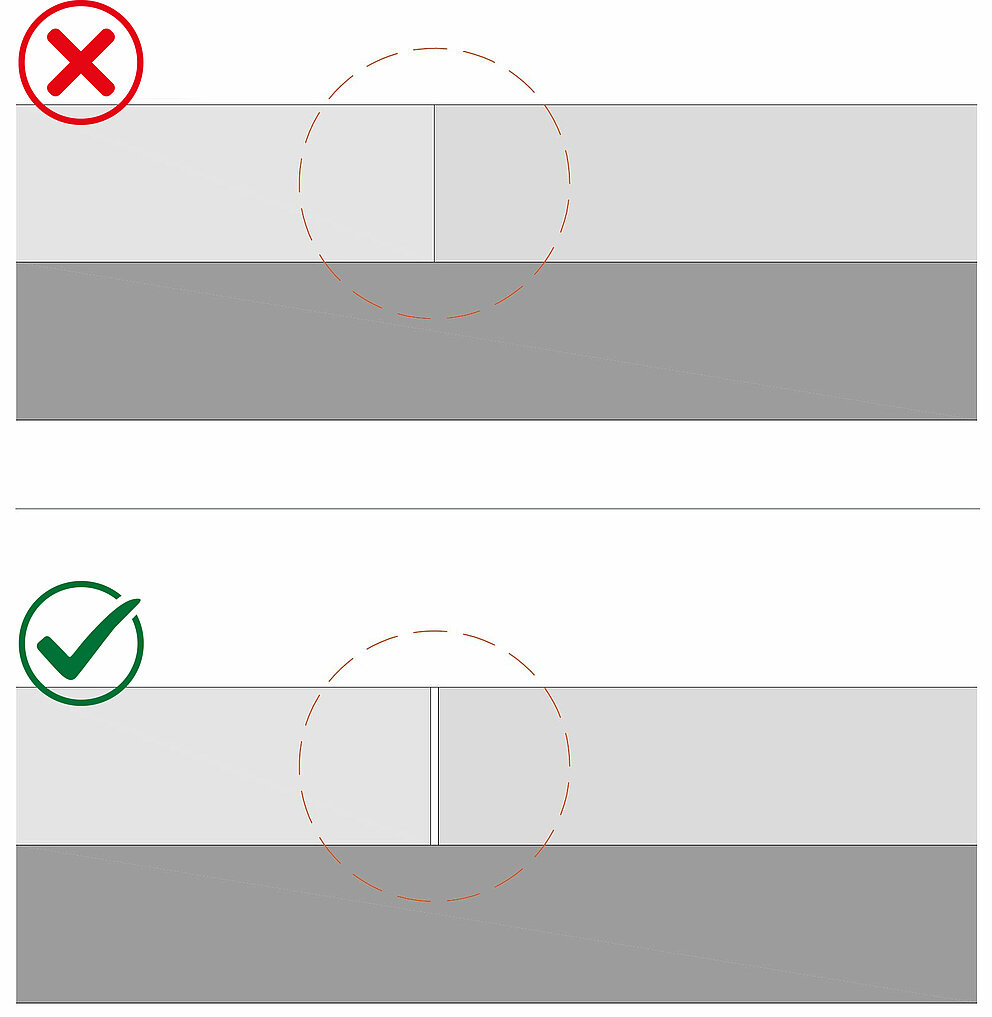 Montáž PREFA škár priamo nad sebou nie je možná: