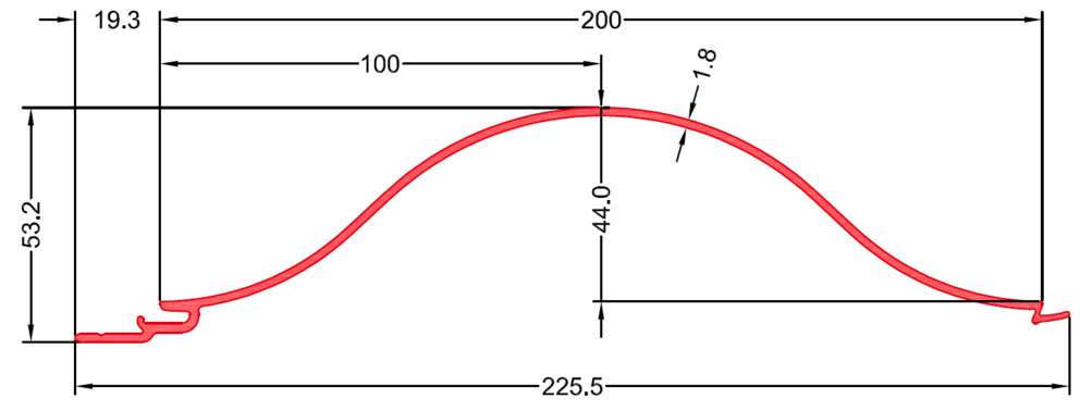 • Celková šírka profilu: 225.5 mm