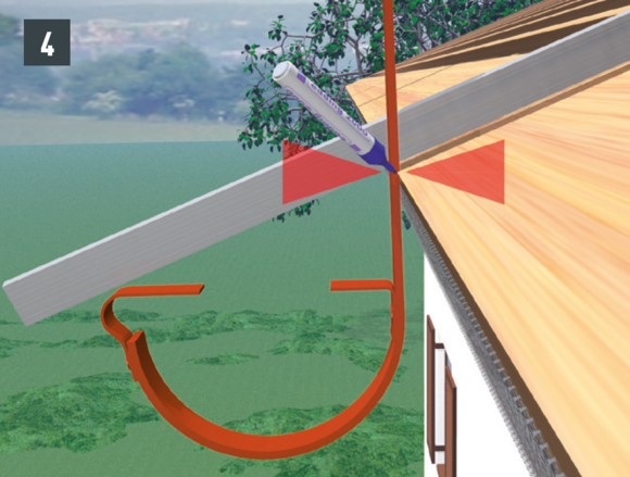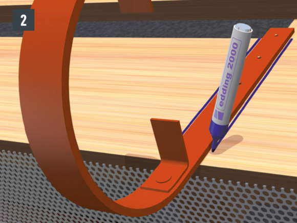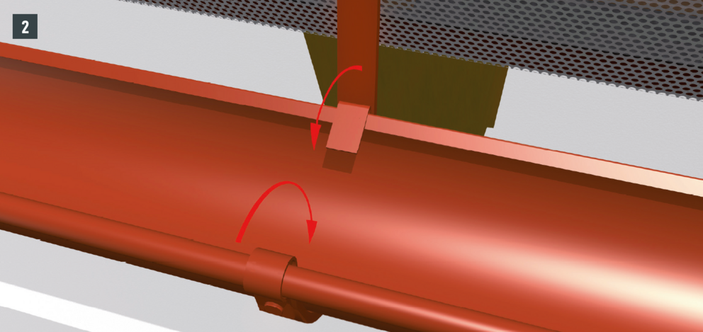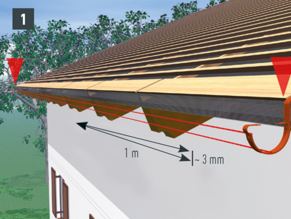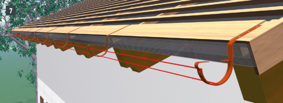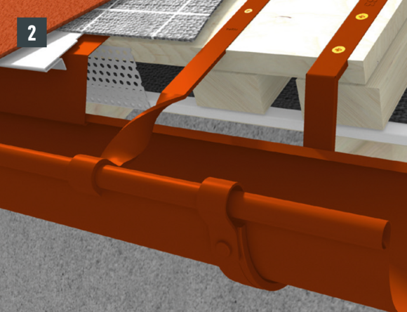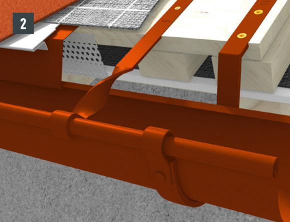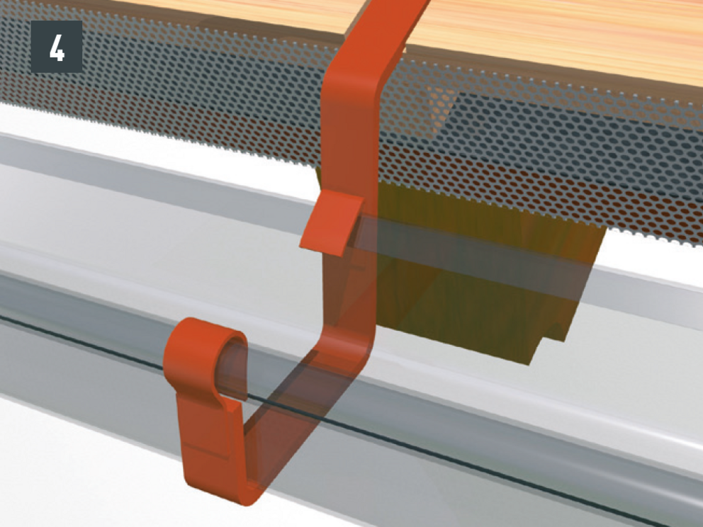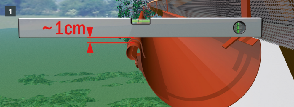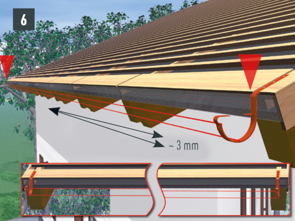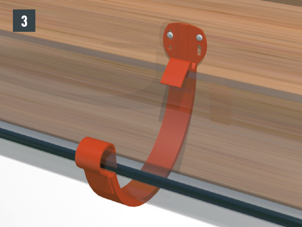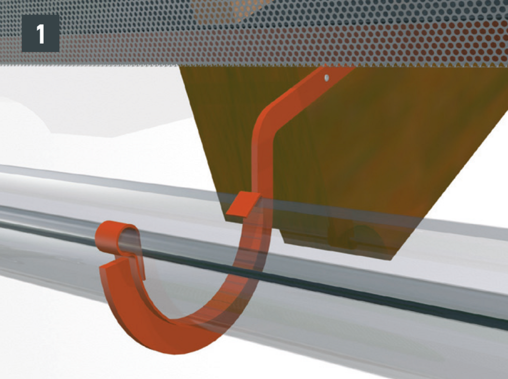Odkvapové plechy sa musia v oblasti horných držiakov nastrihnúť. Montáž horného držiaka je vhodné vykonávať počas montáže žľabu. Dodatočná montáž pri existujúcich žľaboch je náročná.