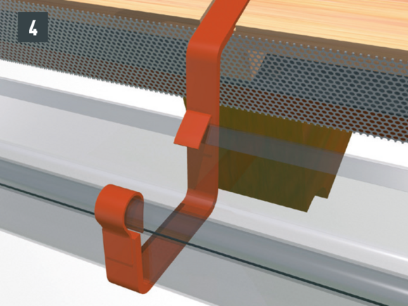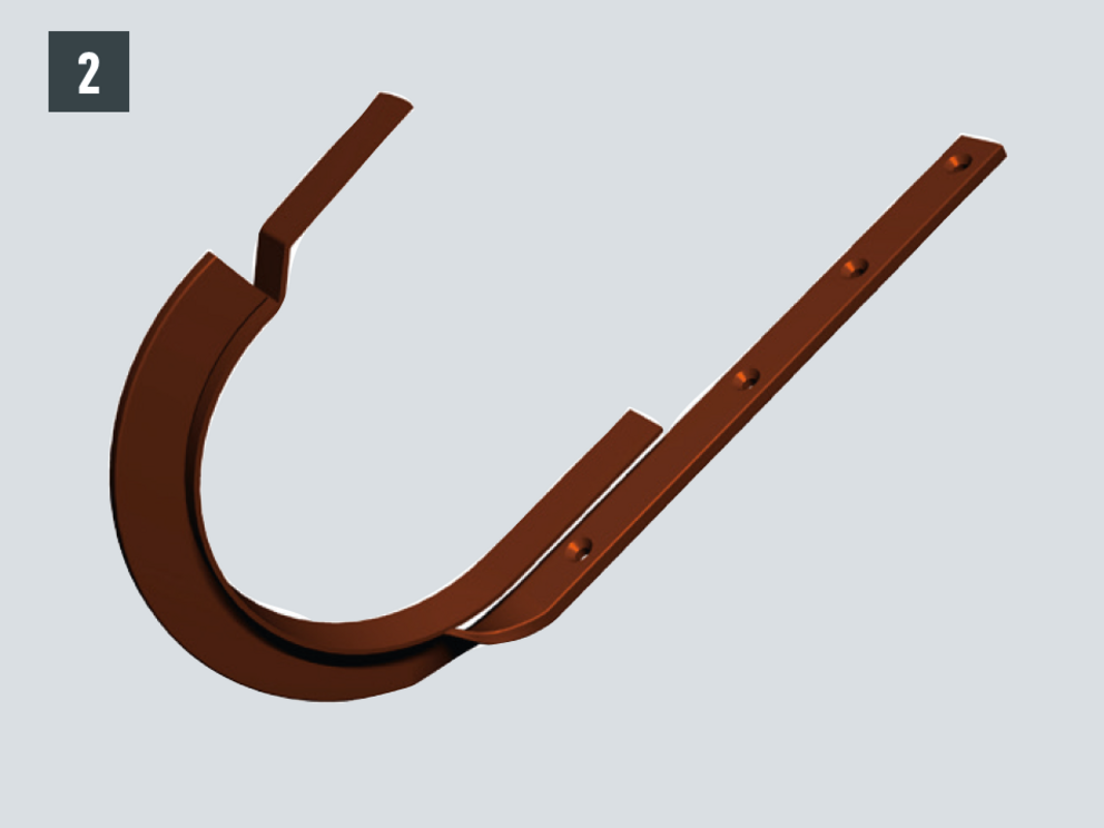 Na dodatočné vystuženie žľabov môžete medzi háky polkruhových žľabov primontovať horný držiak. Horné držiaky PREFA môžete použiť univerzálne na všetky rozmery žľabov.
