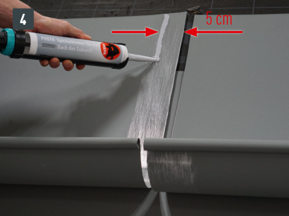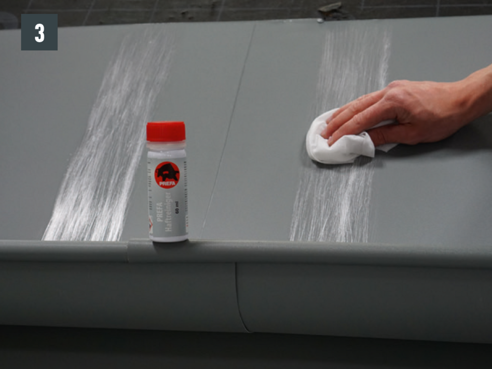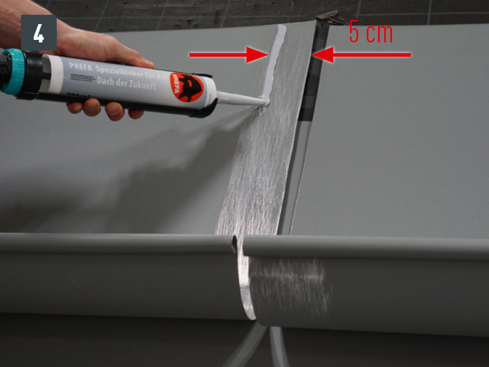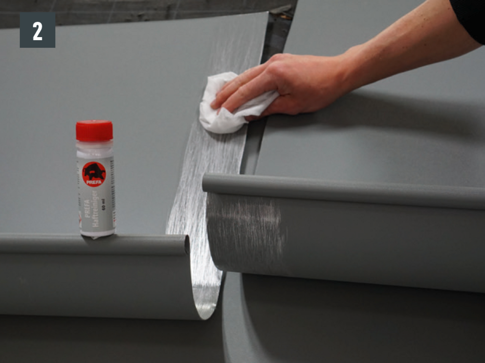 Spoj môžete zhotoviť lepením alebo nitovaním. Nitované spoje treba dodatočne utesniť špeciálnym silikónom PREFA.