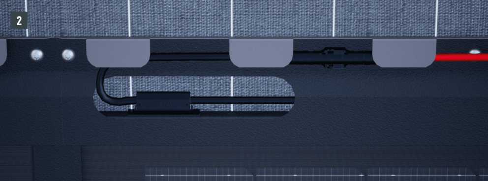 Solárny generátor je dokončený, keď sú všetky integrované solárne panely prepojené a prívod a odvod každej jednotlivej vetvy sú zavedené izolovaným koncom do vnútra budovy.