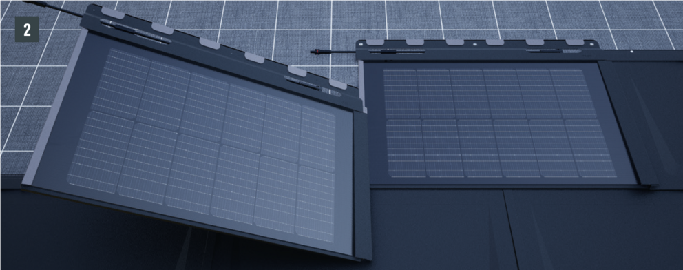 Na vytvorenie lícovaného zakončenia na boku plochy integrovaných solárnych panelov môžete použiť prídavné panely. Sú prispôsobené pre integrovaný solárny panel PREFA a slúžia výlučne na vizuálne doplnenie funkčnej generátorovej plochy, teda negenerujú žiadny elektrický výkon. Montujú sa rovnako ako integrované solárne panely a do krytinovej konštrukcie sa pripájajú bezstykovo bez ovplyvnenia elektrickej funkcie solárneho generátora.