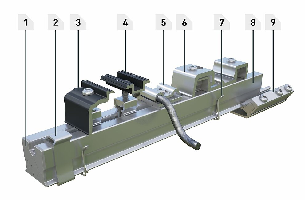 Svorku na uchytenie káblov nasaďte do drážky nosníka šikmo zdola a zaistite ju v nosníku zatlačením šikmo nahor.