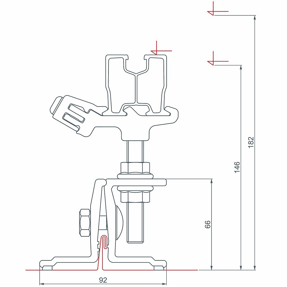 Voľné osadenie závitovej tyče vrátane držiaka profilového nosníka a poistných matíc. Ručné zaistenie matíc na prípadné neskoršie výškové prestavenie držiaka profilového nosníka (vidlicový kľúč: veľkosť kľúča 18).