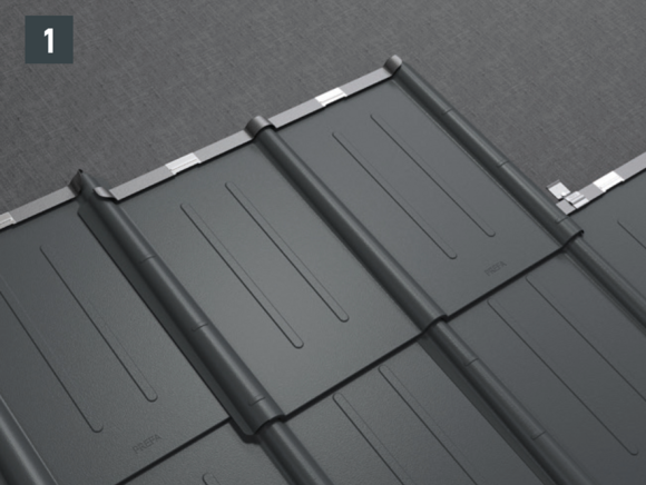 Falcované škridle pokladajte vo vodorovných radoch (obr. 1).