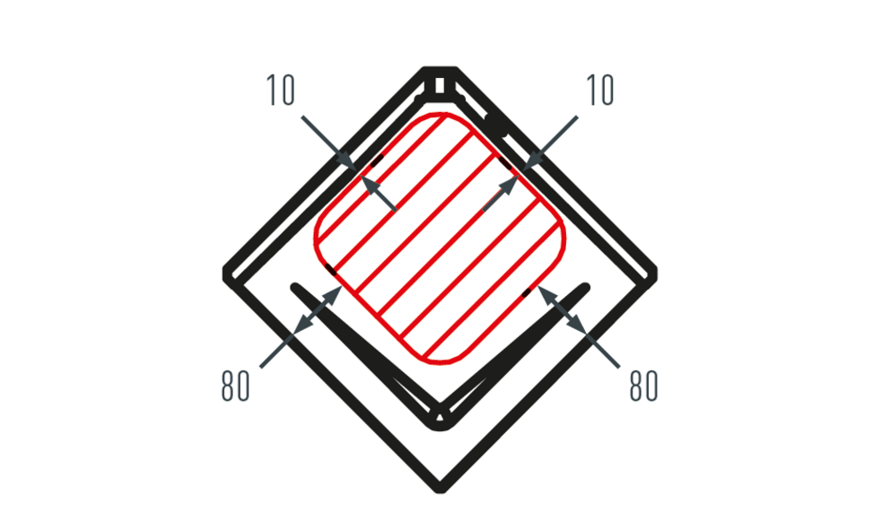 Pri montáži strešného príslušenstva rešpektujte prípustnú montážnu oblasť na strešných šablónach 29 × 29. Na nasledujúcom obrázku je znázornená montážna oblasť pre výrobky príslušenstva na podperách. Pre iné výrobky príslušenstva môžu byť definované odlišné montážne oblasti.