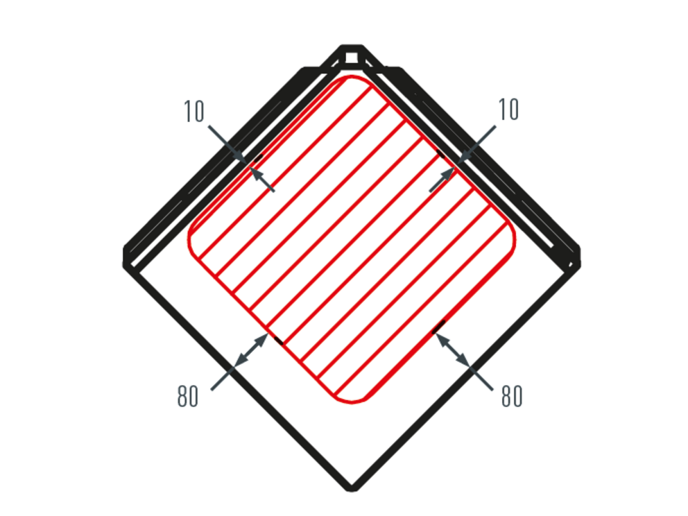 Pri montáži strešného príslušenstva rešpektujte prípustnú montážnu oblasť na strešných šablónach 44 × 44. Na nasledujúcom obrázku je znázornená montážna oblasť pre výrobky príslušenstva na podperách. Pre iné výrobky príslušenstva môžu byť definované odlišné montážne oblasti.