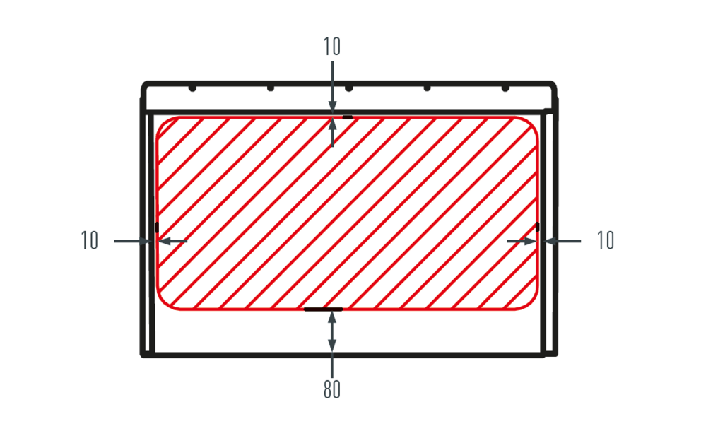 Pri montáži strešného príslušenstva rešpektujte prípustnú montážnu oblasť na strešných panelov FX.12. Na nasledujúcom obrázku je znázornená montážna oblasť pre výrobky príslušenstva na podperách. Pre iné výrobky príslušenstva môžu byť definované odlišné montážne oblasti.