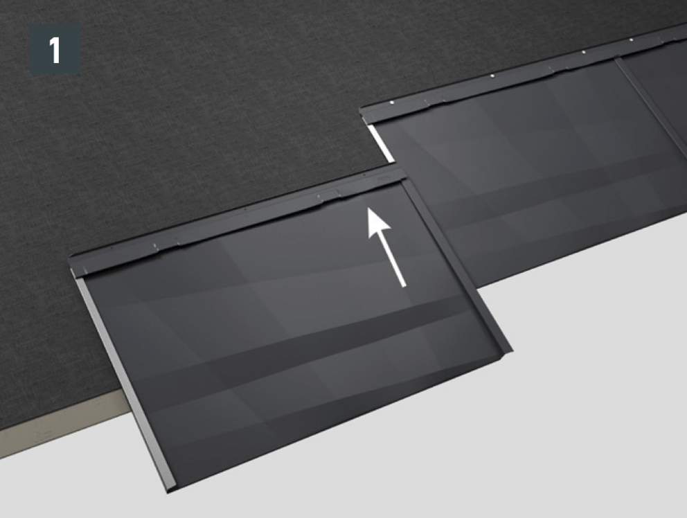 • Strešné panely FX.12 sa kladú sprava doľava a v radoch (vodorovných radoch).