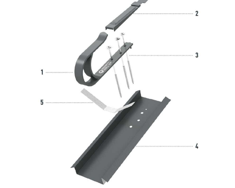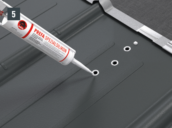4 Príp. spevňovacia podložka (vždy sa vyžaduje pre strešné šablóny a strešné šindle PREFA) |