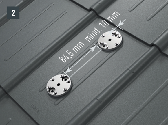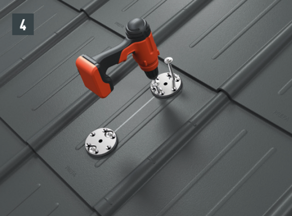 Hĺbka prieniku originálnych upevňovacích skrutiek do nosnej spodnej konštrukcie (krokvy) musí byť minimálne 80 mm. V prípade strešných šablón 29 × 29, strešných šablón 44 × 44 a strešných šindľov sa vyžaduje inštalácia spevňovacej podložky.