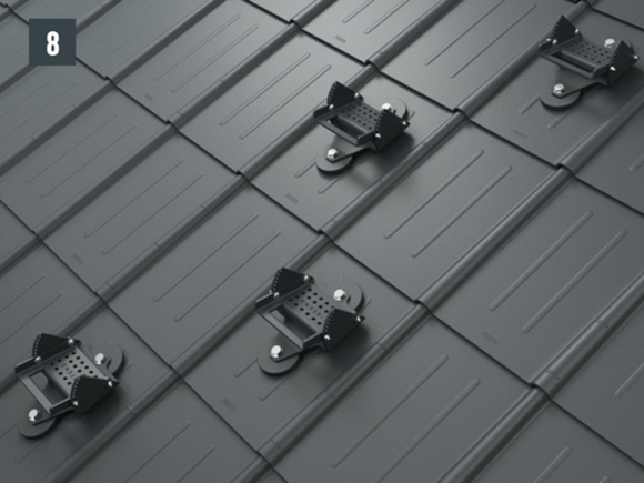 Pri falcovaných škridlách, strešných paneloch R.16 a strešných paneloch FX.12 môže byť potrebné namontovať spevňovaciu podložku (napr. ak sa v oblasti krokiev nachádza falc alebo hrebeň vlny).