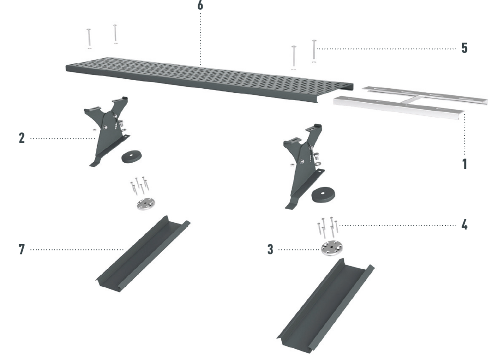 Systém držiakov strešnej lávky bol vyvinutý na prístup na strechu a nesmie sa používať na iné účely.