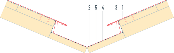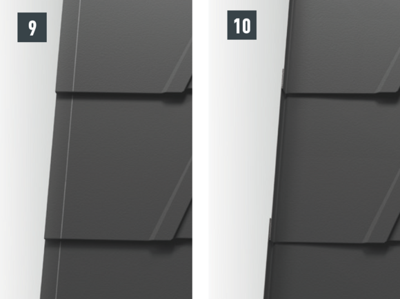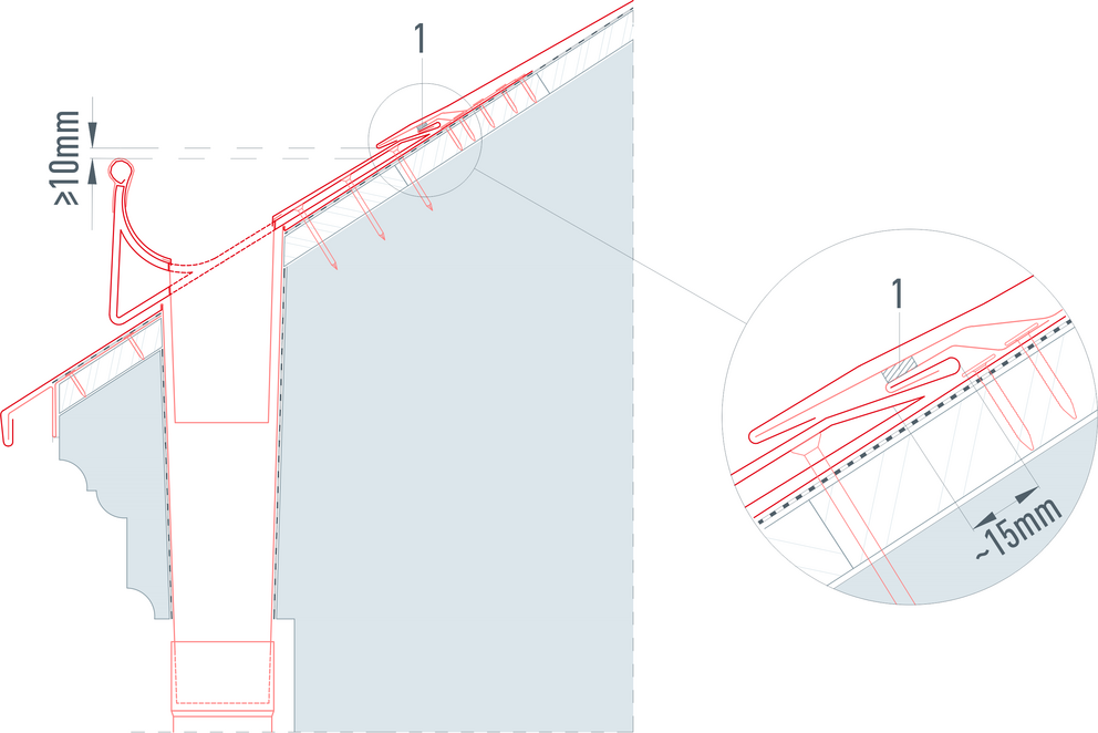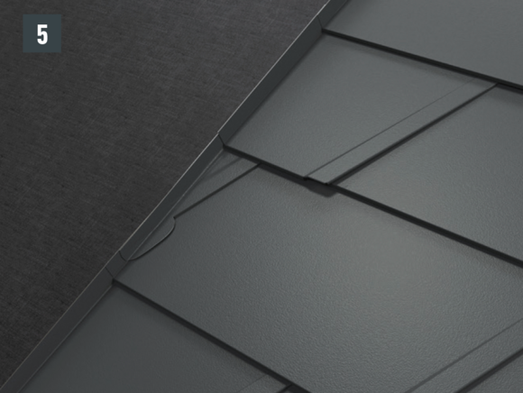 Na každom ľavostrannom vyhnutí strešného šindľa (štítový pás a lemovanie) sa musia falce prechádzajúce šikmo nadol upraviť tak, aby sa zabránilo kapilárnemu vzlínaniu.