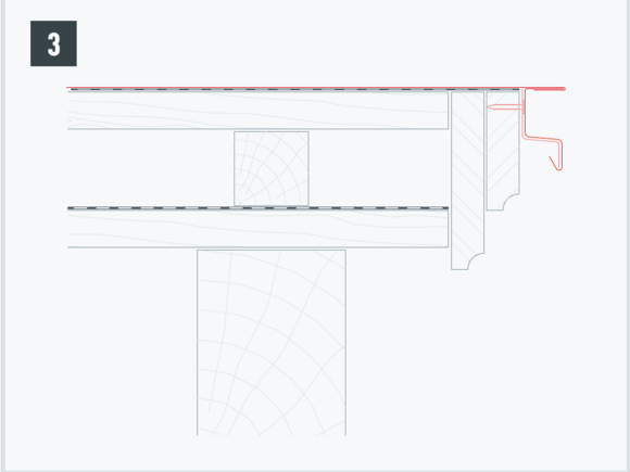 Podkladový pás je pripevnený rovno po celej dĺžke odkvapu pomocou vopred vykonaného šnúrovania.
