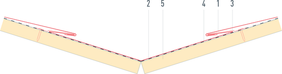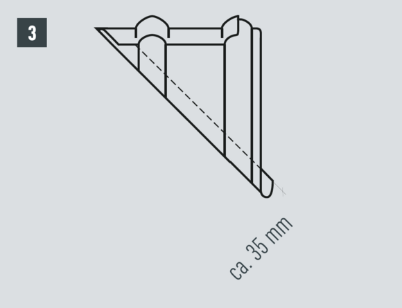Pri každom bočnom vyhnutí strešnej šablóny 44 × 44 (záveterná lišta a lemovanie) vystrihnite a vyhnite falce prechádzajúce šikmo nadol na spodnej strane.