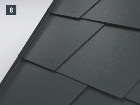 Posledný strešný šindeľ pred vyhnutím okraja skráťte a namontujte (obr. 7 a 8).