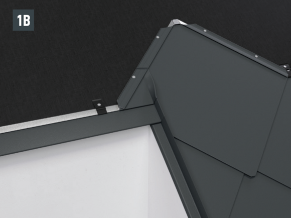 Pri odskokoch strechy so strešnou šablónou 29 × 29, resp. 44 × 44 je vo väčšine prípadov potrebné prispôsobiť oplechovanie odkvapu. Týmto sa môže začať so štartovacou šablónou pre strešné šablóny 29 × 29 alebo 44 × 44 (obr. 1A a 1B).
