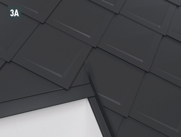 Ak má byť na strešné šablóny 29 × 29 alebo 44 × 44 namontovaný priebežný štítový plech, musia sa použiť ukončovacie šablóny pre strešné šablóny 29 × 29, resp. 44 × 44. Umožnia vytvorenie vodorovnej závesnej drážky.
