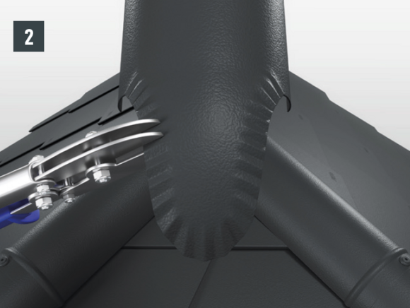 Originálny odvetrávací hrebenáč Jet-Lüfter má na oboch stranách rozšírenie na prekrytie krytiny. Napriek tomu vytiahnite strešnú krytinu o 40 mm, aby ste dosiahli napojenie odolné voči dažďu.