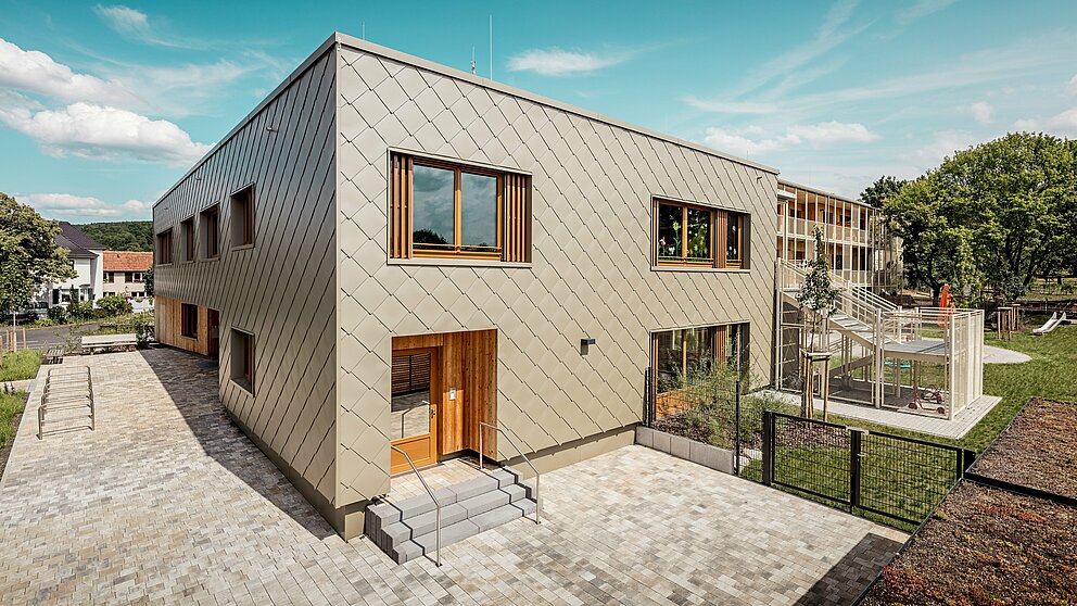Dolnofranské mesto Alzenau je známe svojimi vinicami a hradom Alzenau, jednou z najvýznamnejších stavieb neskorej gotiky vo Frankách. S hrdosťou na svoje historické dedičstvo usiluje tradične založené mesto na okraji Spessartu o harmonické spojenie minulosti a budúcnosti prostredníctvom zodpovedného a udržateľného mestského rozvoja. Každý nový stavebný projekt je dôkladne posudzovaný z hľadiska ekologického a urbanistického prínosu. Rovnako tomu bolo aj pri novostavbe komunálnej materskej školy, ktorú úspešne realizovali architekti Härtner zo Stuttgartu.