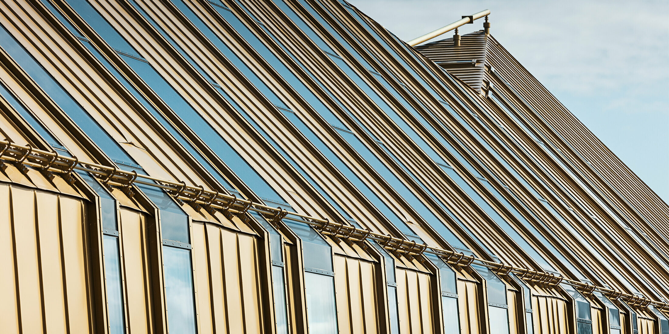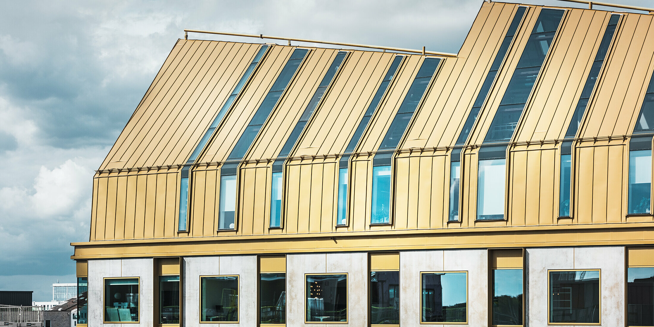 Nosná oceľová konštrukcia strechy je pokrytá 2000 m² materiálu PREFALZ, ktorého povrchovú úpravu špeciálne vytvorila spoločnosť PREFA. Novo vyvinutá špeciálna farba sa nazýva Zlatá Jaisalmer-2525, pomenovaná po indickom púštnom meste Džaisalmér, ktorého označenie Zlaté mesto bolo inšpiráciou pre žiarivú farbu tejto povrchovej úpravy.